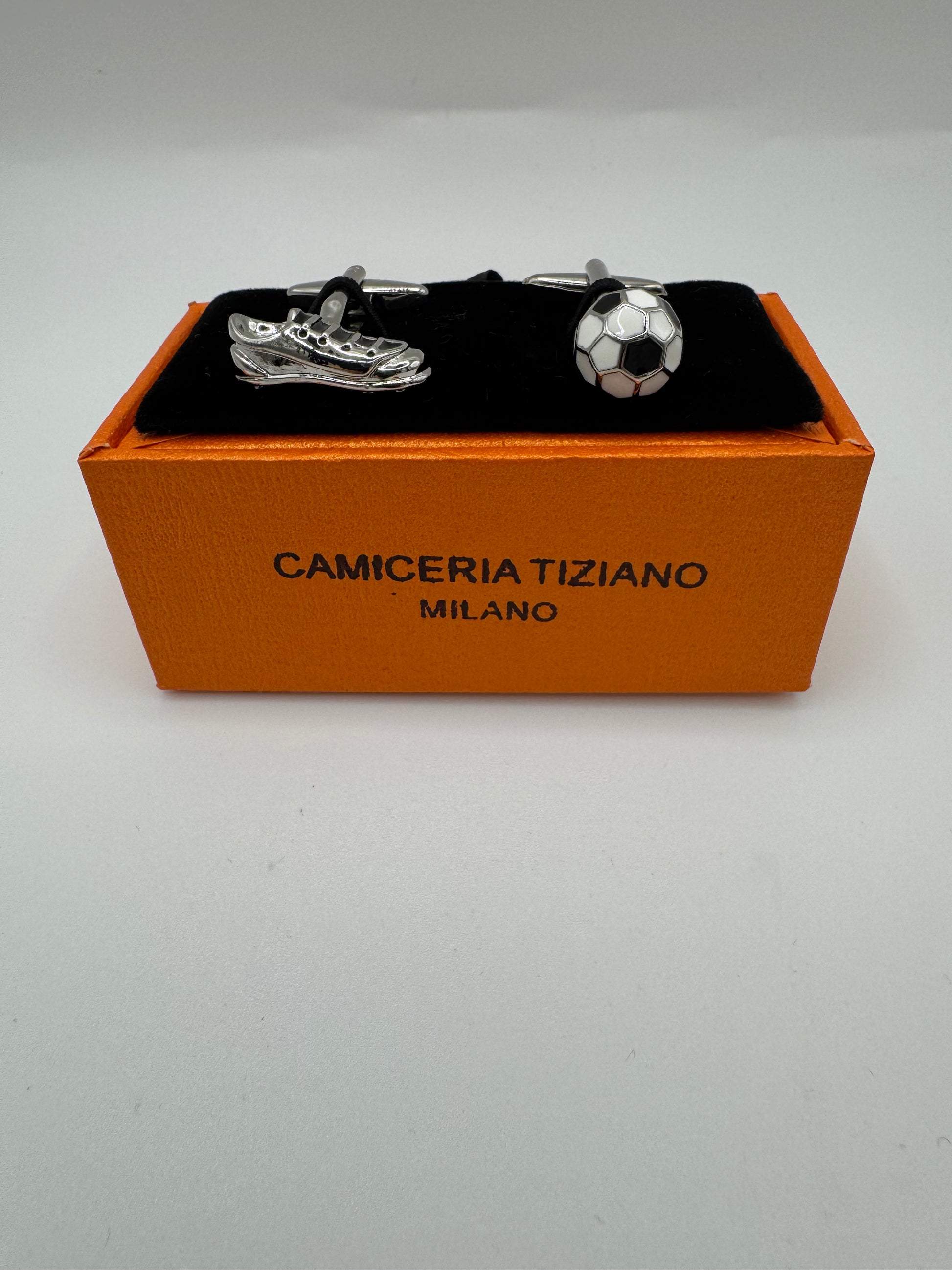 Gemelli da polso scarpa calcio e pallone bianco nero 327