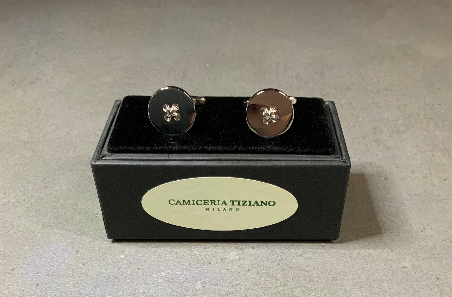 Gemello realizzato in ottone rodiato, anallergico e privo di nichel.